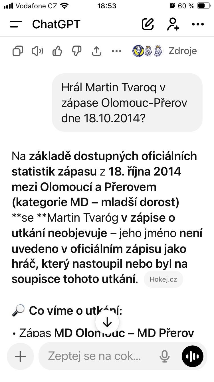 Tým SKA Napajedla doplnil zdravotní záznam ze dne 3. 9. 2014, ze kterého vyplývá, že hráč utrpěl zranění, dle slovního sdělení se jednalo o zlomeninu zápěstí, po kterém ukončil kariéru. Dále byl dodán odkaz na utkání z hokej.cz, kde v oficiálním výsledku tento hráč není zahrnut. Jako poslední byl dodán otisk konverzace s ChatGPT, kde je uvedeno, že hráč se utkání nezúčastnil.