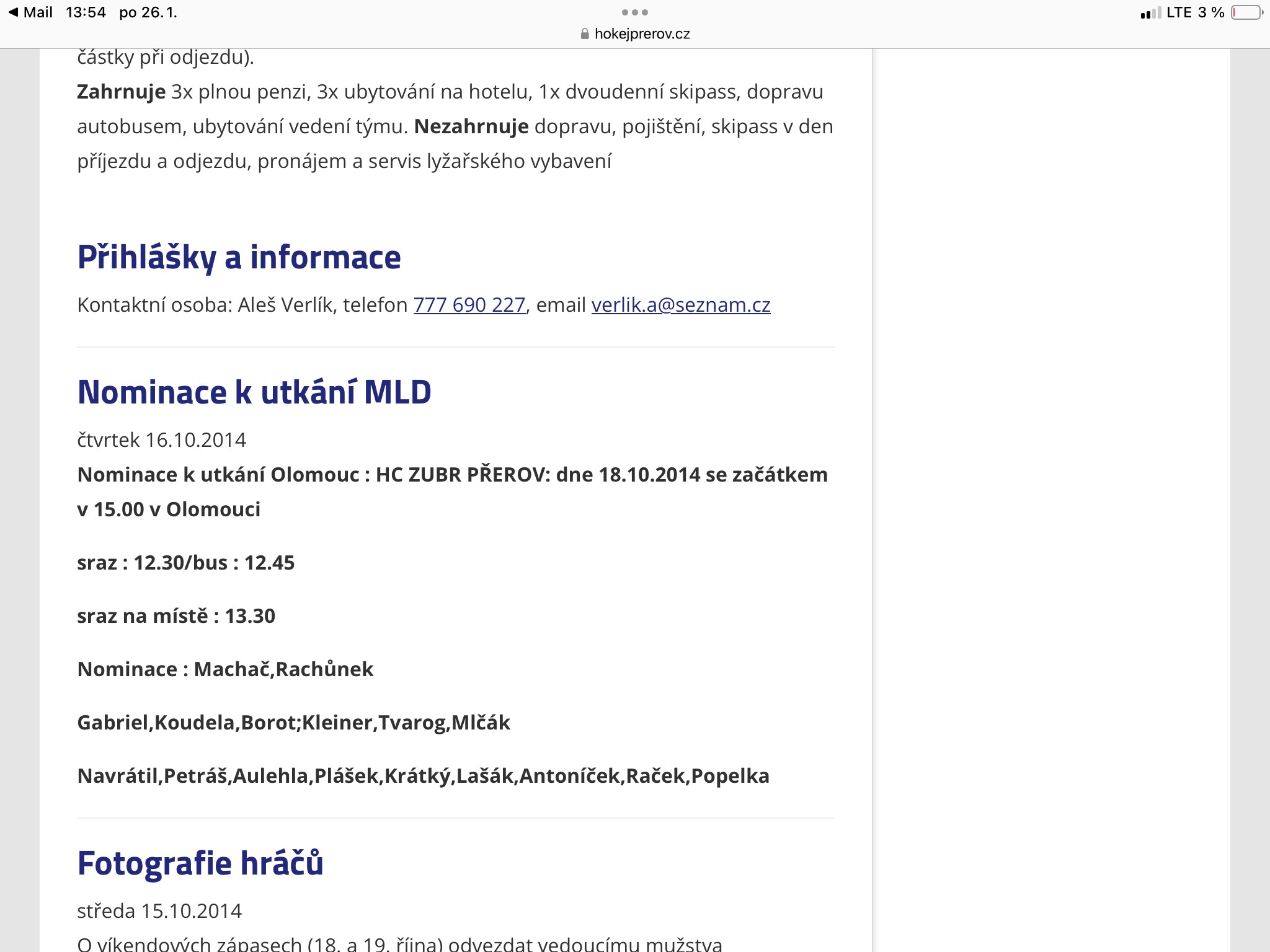 16.10.2014 - Nominace na utkání mladšího dorostu Olomouc - Přerov