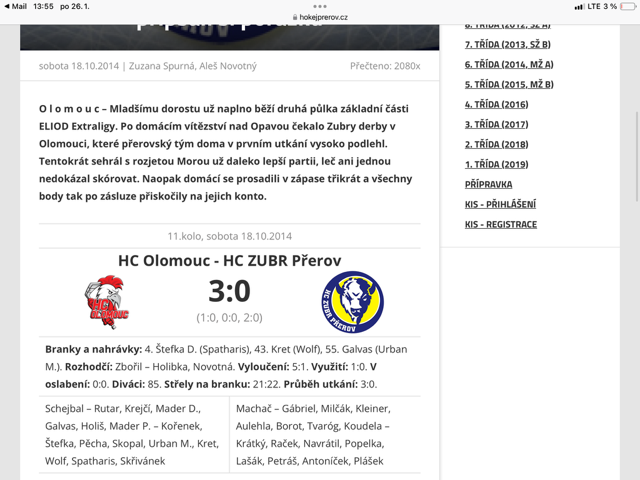 Zápis ze stránky hokej.cz
